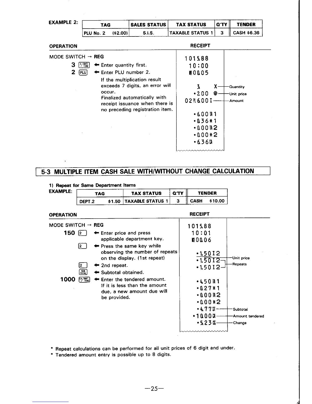 Casio CE-2108 - Multiple Item Cash Sale With;Without Change Calculation