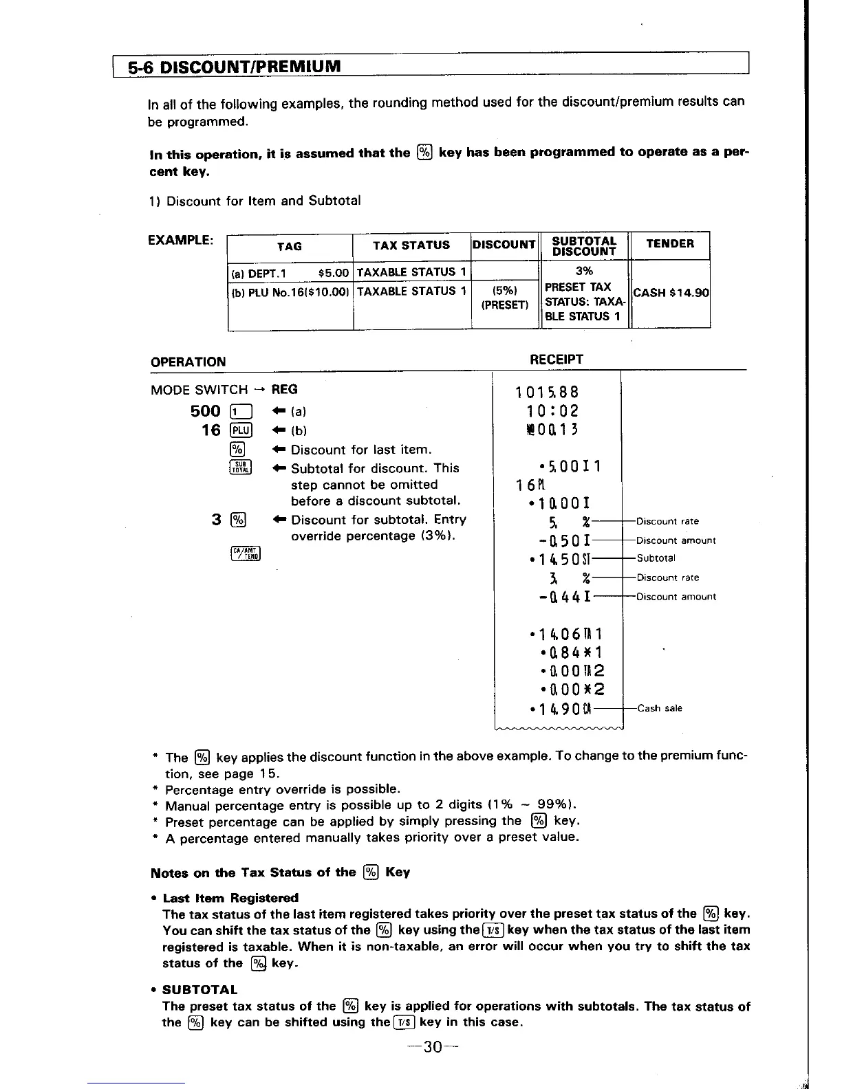 Casio CE-2108 - Discount;Premium; Last Item Registered; Subtotal