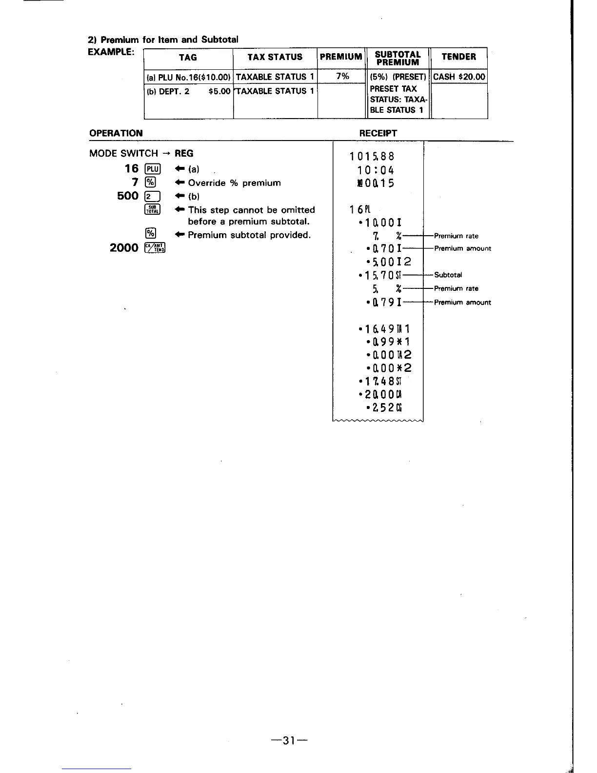 Casio CE-2108 - Premium for Item and Subtotal