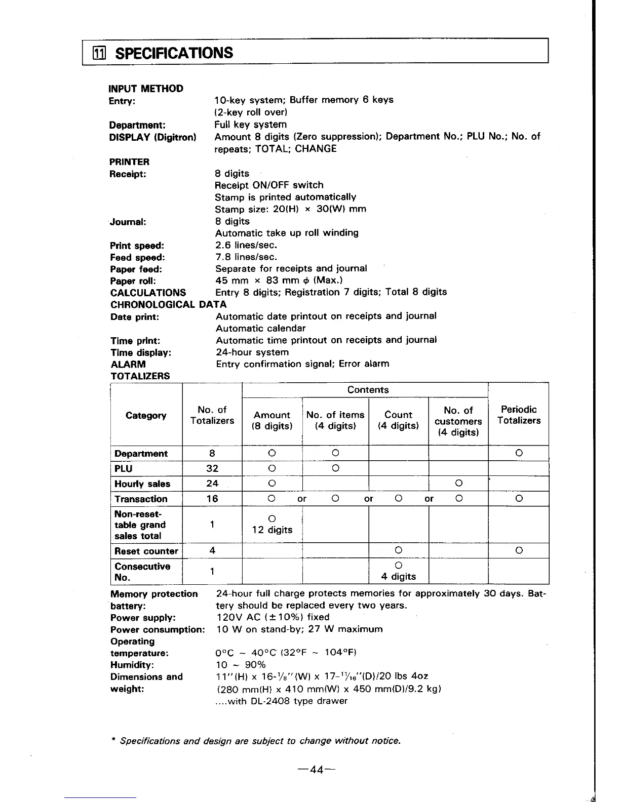 Casio CE-2108 - Specifications