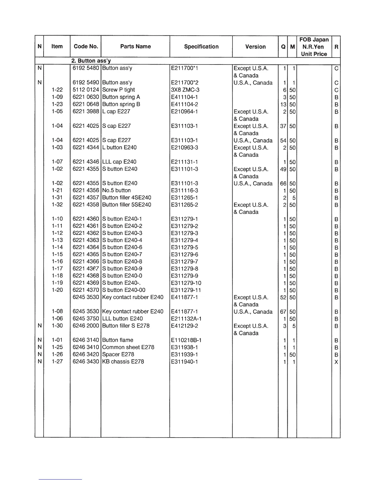 Casio CE-3700 - Parts List (cont.); Drawer Parts (DL-2350 Europe)