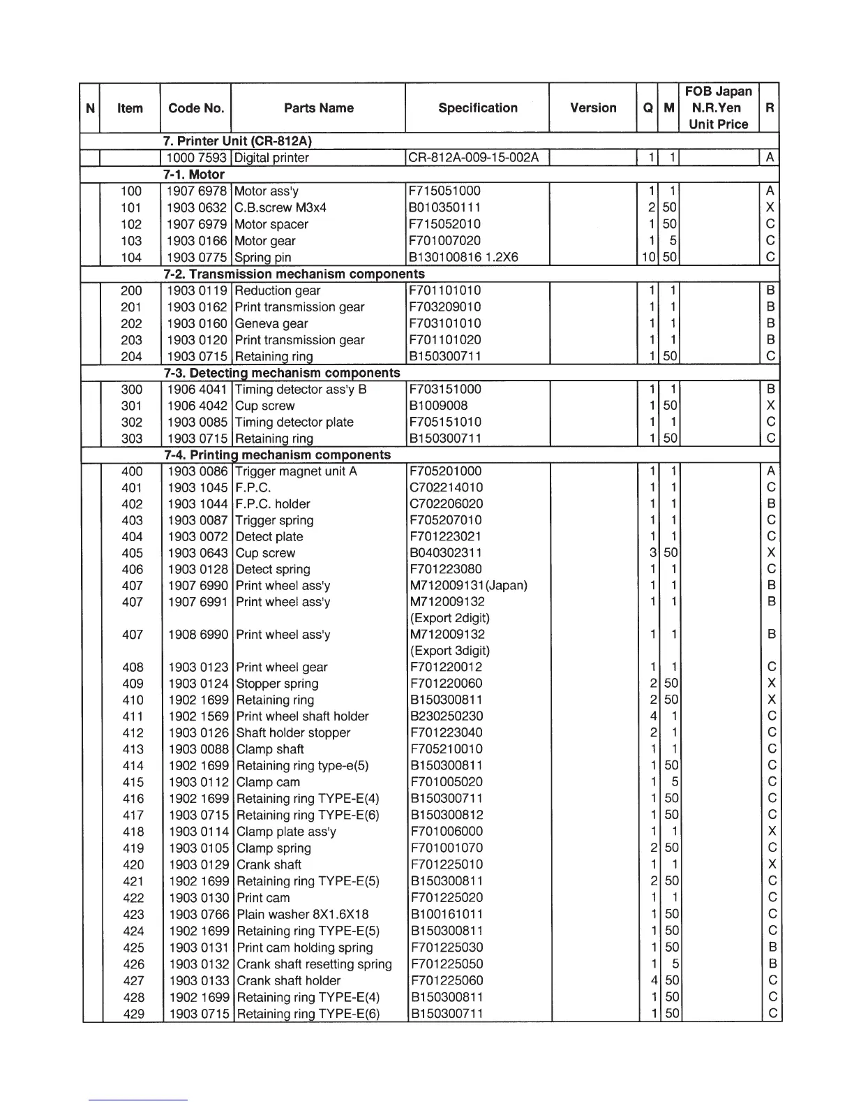 Casio CE-3700 - Parts List (cont.); Printer Unit (CR-812 A) Parts Overview