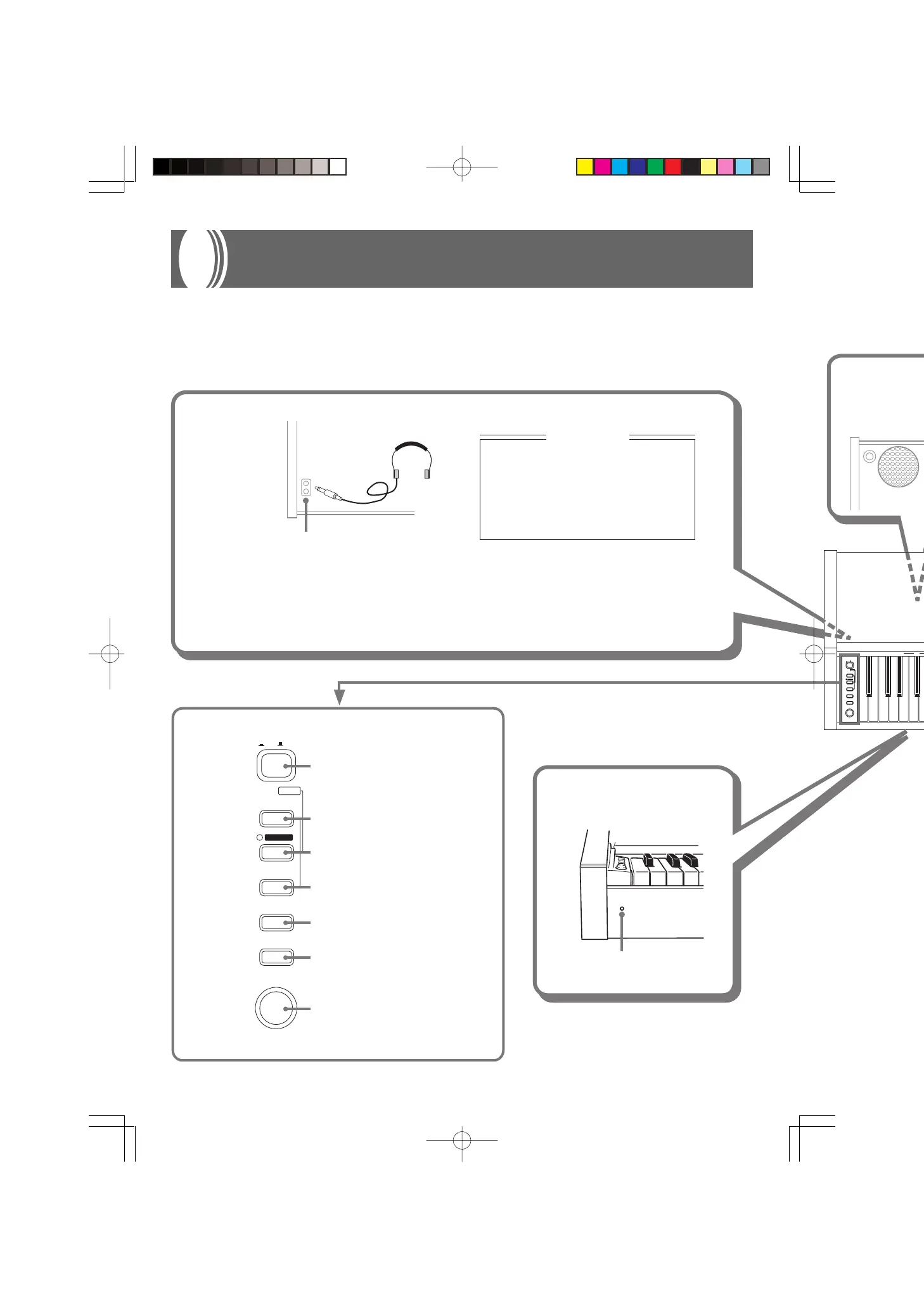 Connect commercially available headphones to the CELVIANO’s headphones jack. This cuts off the built-
