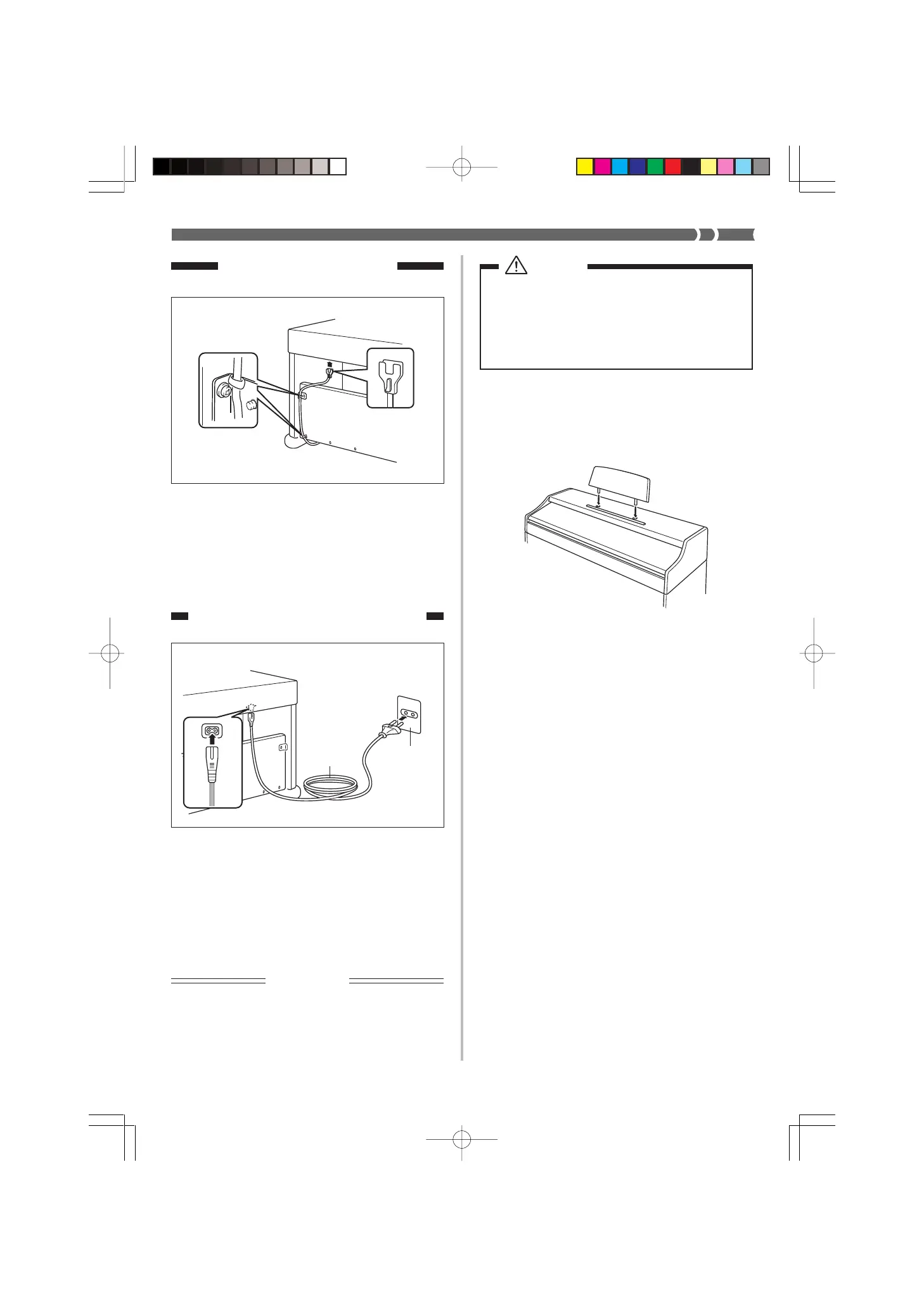 2.Attach the power cord that comes with the piano to the