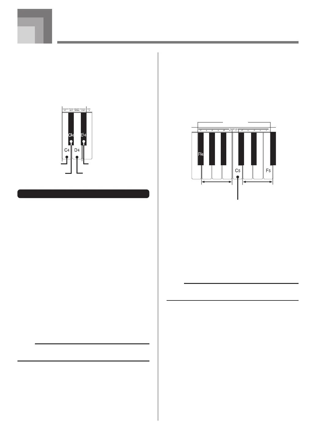 Use the keys shown below to change the transpose setting.