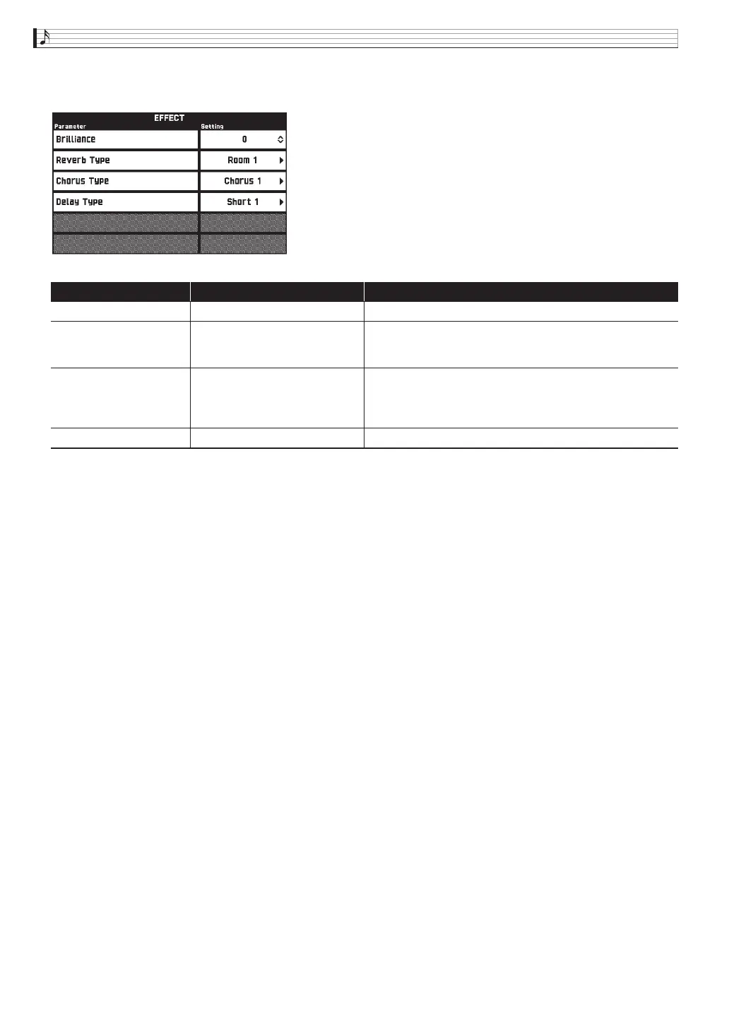 Short Delay3, Short Delay4, Soft Chorus, Bright Chorus,