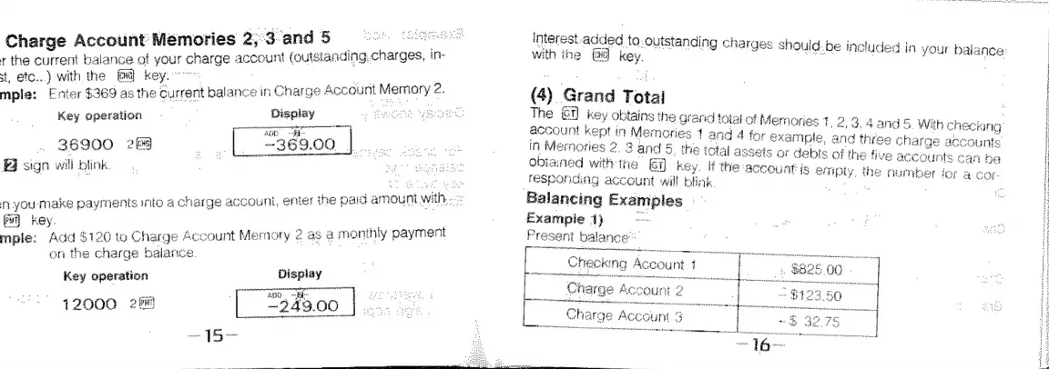 Casio CHECKBOOK CB-100 - Grand Total of Accounts; Balancing Calculation Examples