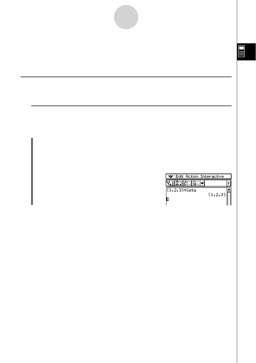 Example: To input the list {1, 2, 3} and assign it to LIST variable “lista”.