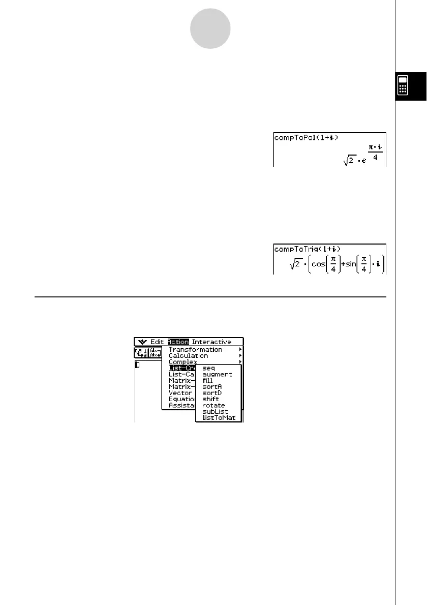 Example: To transform 1 + i into its trigonometric form (in the Radian mode)