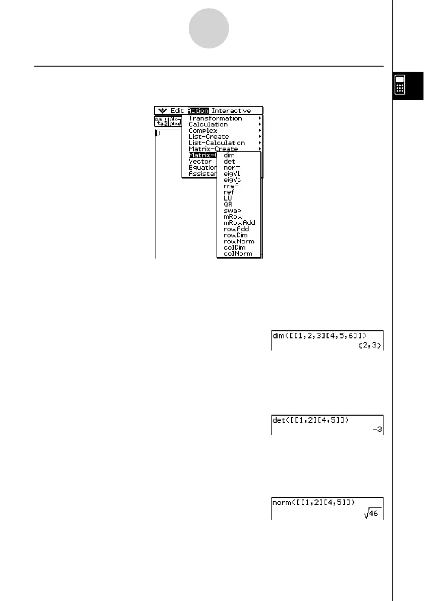 The [Matrix-Calculation] submenu contains commands that are related to matrix calculations.