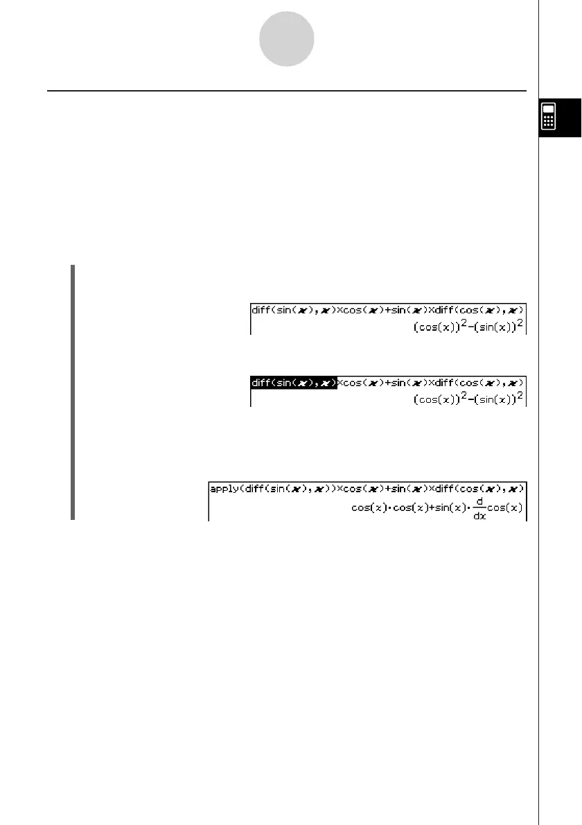 Example: To calculate the result of diff(sin(x),x) × cos(x) + sin(x) × diff(cos(x),x), and then