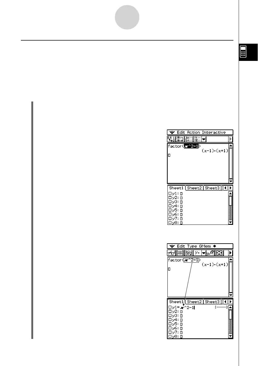 (1) On the work area window, tap ! to display the Graph Editor window in the lower