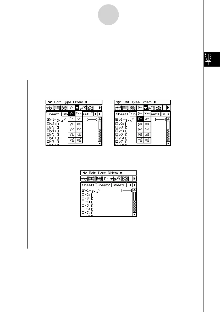 (2) Tap the down arrow next to “y =”, or on the menu tap [Type]. On the list that appears,