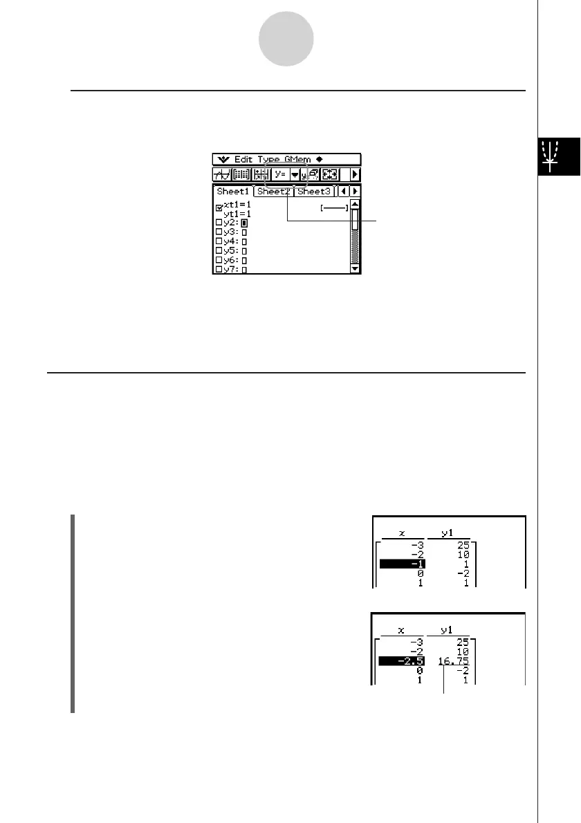 Example: To change the x-value in line 3 of the number table from –1 to –2.5