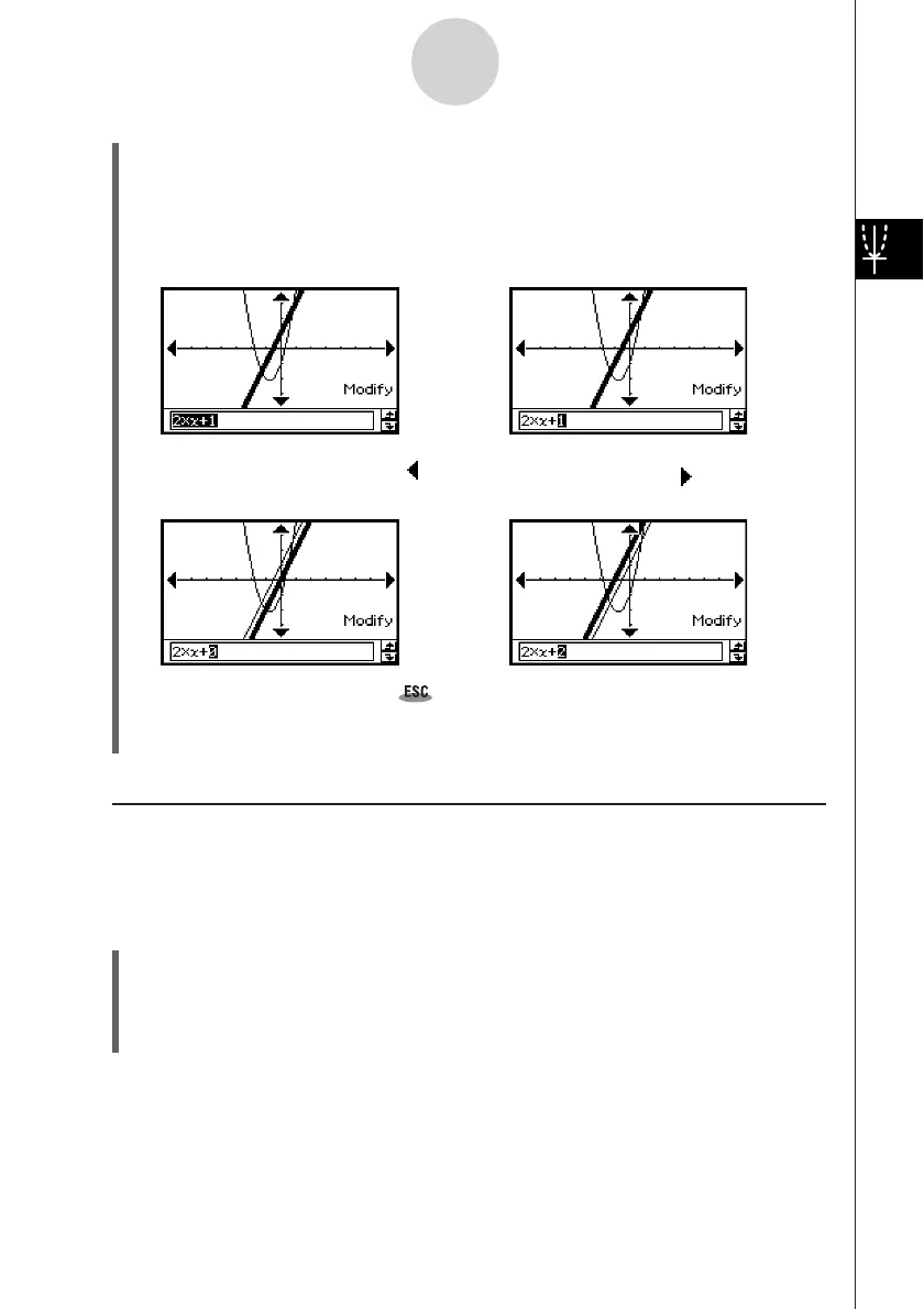 (8) To modify the y2 graph (2x + 1), tap the down graph controller arrow to make it the