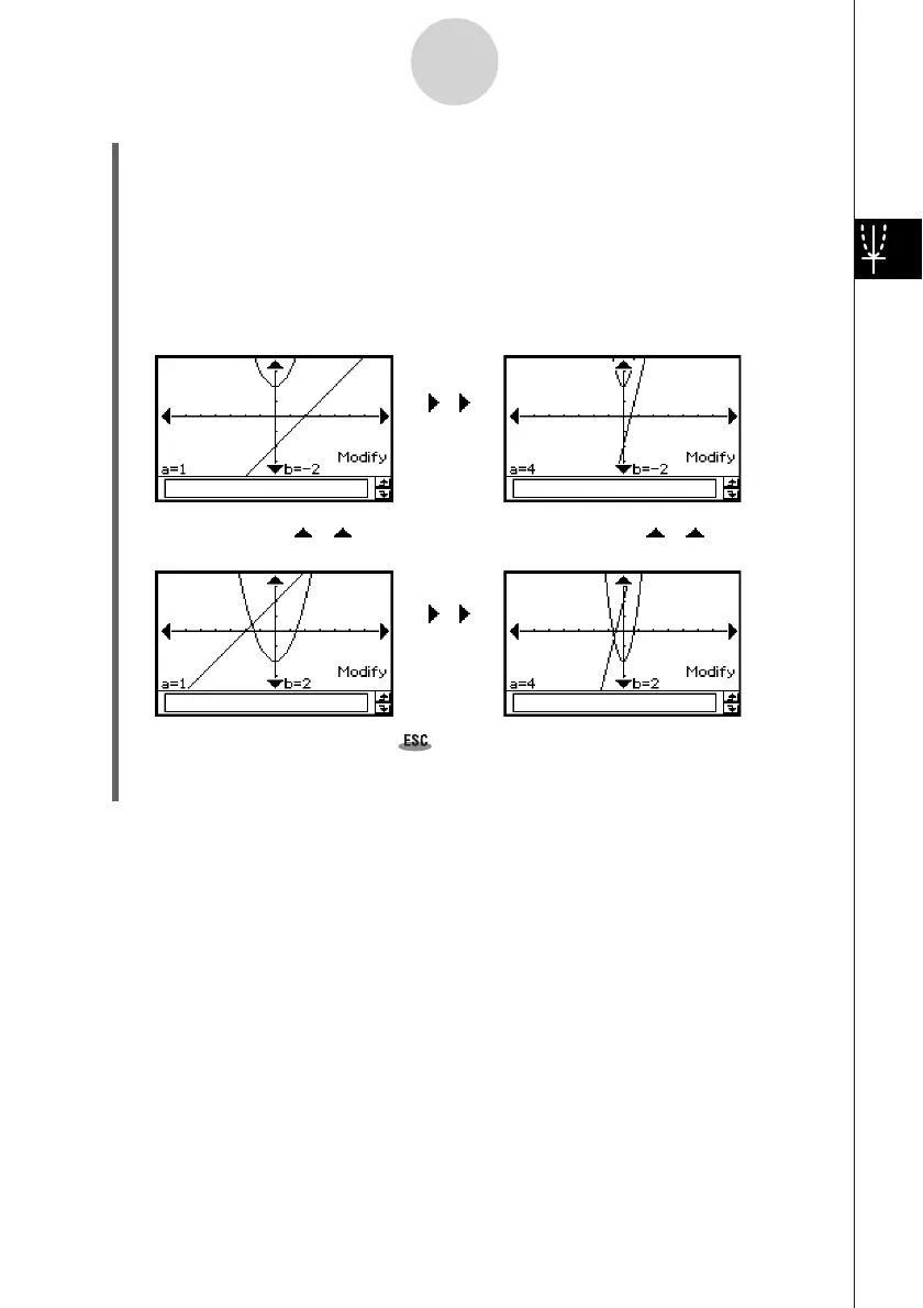•To change the value of variable b, press the up or down cursor key, or tap the up or