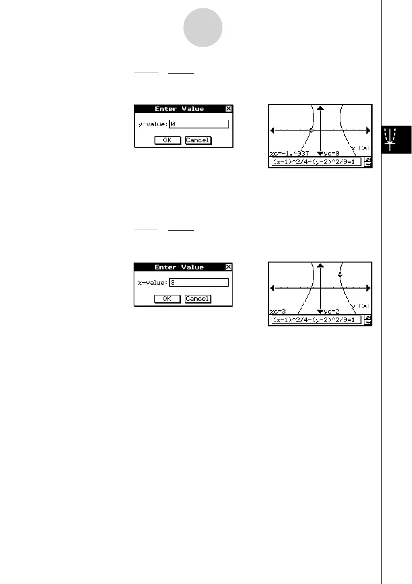 • When there are two x-coordinates, press the left and right cursor keys or tap the left and right
