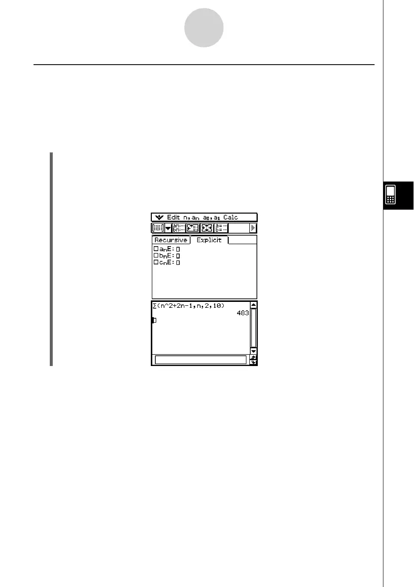 (2) Tap (or press) O, [Sequence RUN], [Calc], [Σ], [n,an], [n], {, 2, +, 2, [n,an],