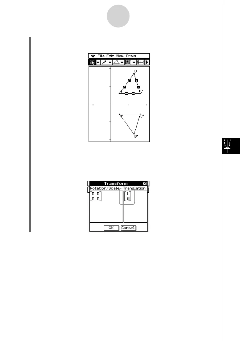 • This draws triangle A’B’C’, which is symmetrical to triangle ABC about the x-axis.