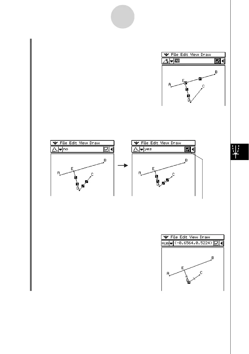 (7) Select only line segments DE and DC, and then tap the down arrow next to the