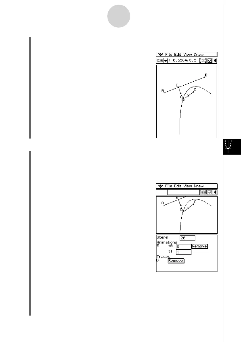 (14) With point D still selected, tap [Edit], [Animate], and then [Go (once)].