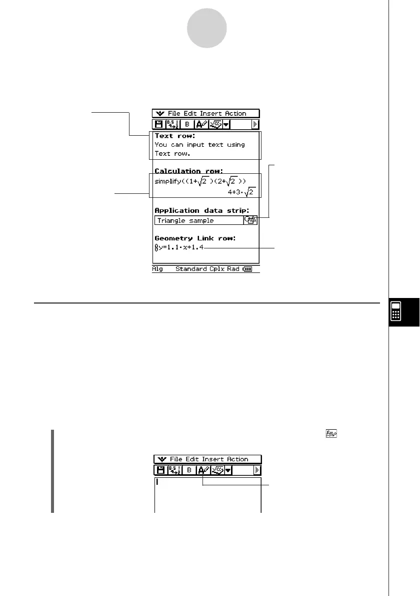 •You can also use the ) soft keyboard to input mathematical expressions into a text row.