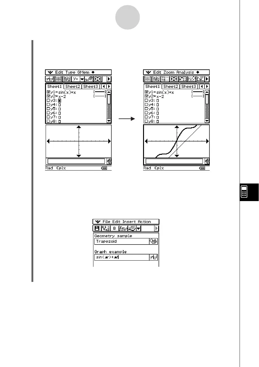 •Tap the ! button to display the Graph application’s Graph Editor window, enter a