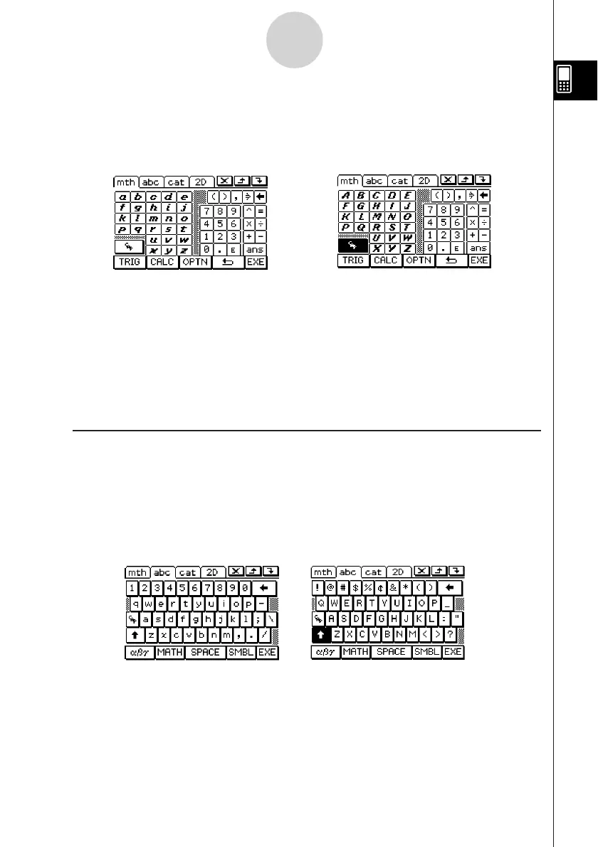 keyboard. Tapping the E key switches to a key set for inputting upper-case single-