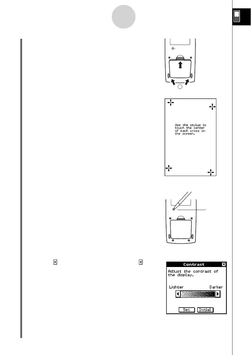 •Tapping [Initial] on the Contrast dialog box returns contrast to its initial factory default