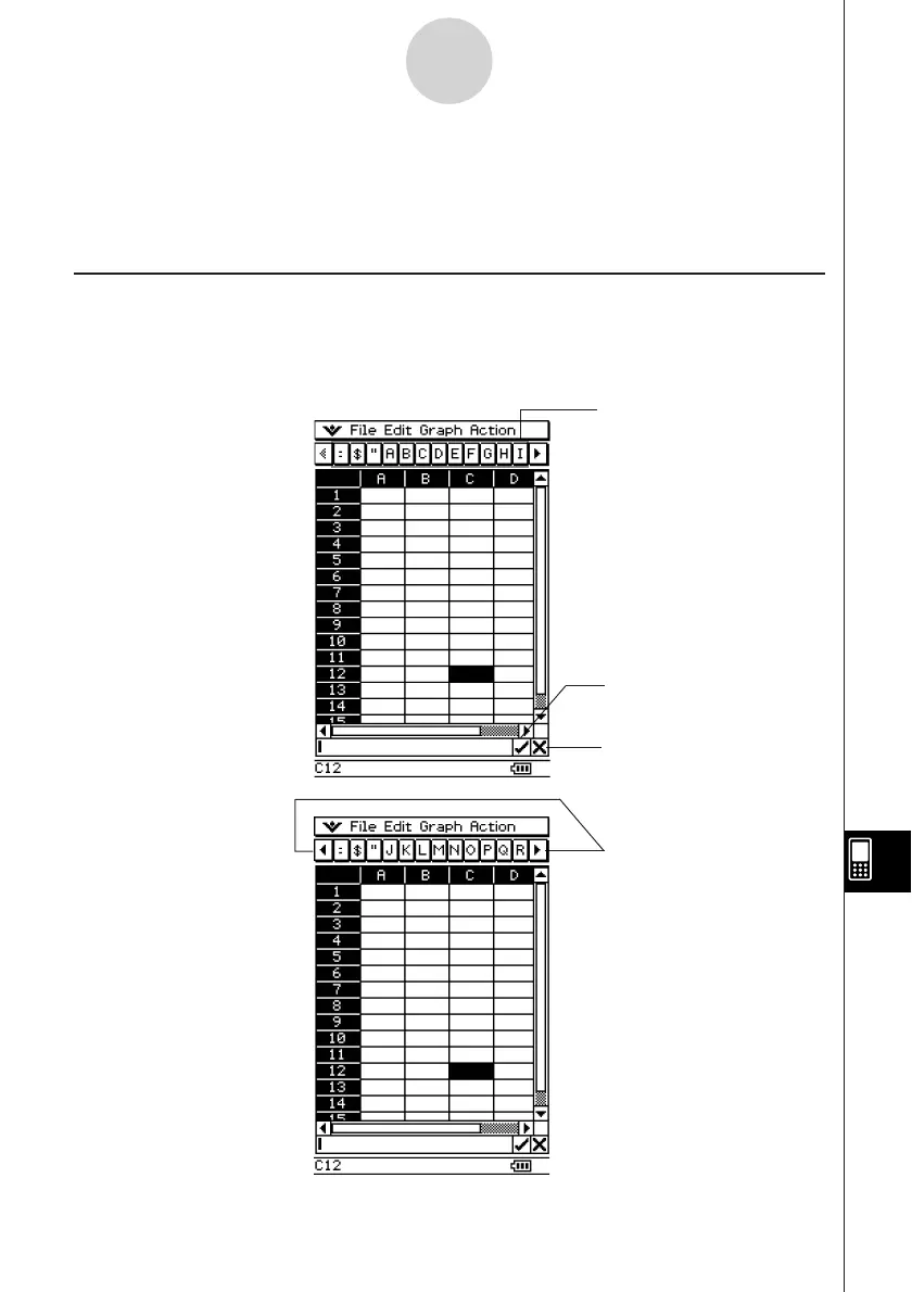 Entering the edit mode (see page 13-4-2) displays the editing cursor in the edit box and the
