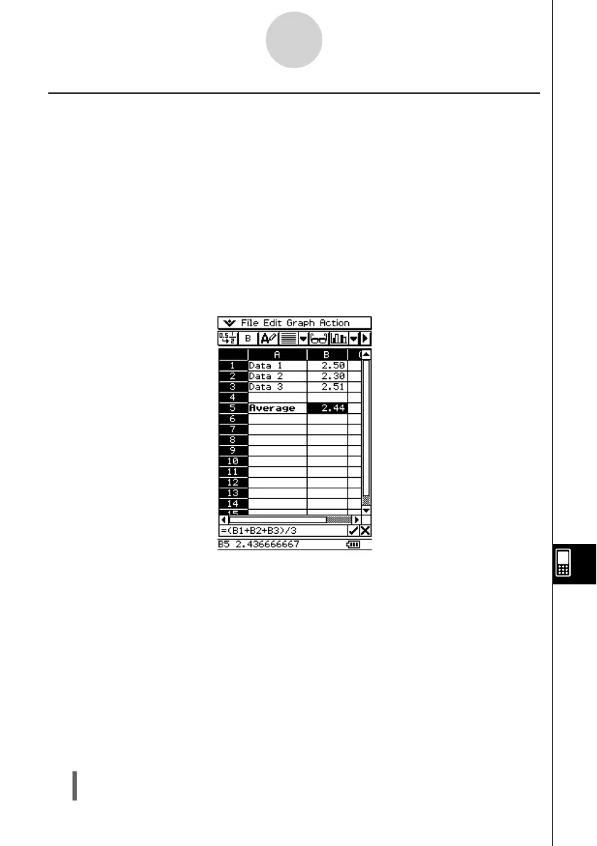 The following shows a simple example where a formula in cell B5 calculates the average of
