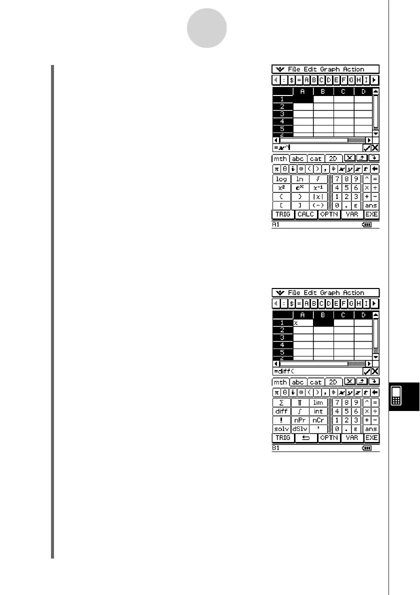 (9) Tap cell A1, press ,, x, ,, 1, and then press ).