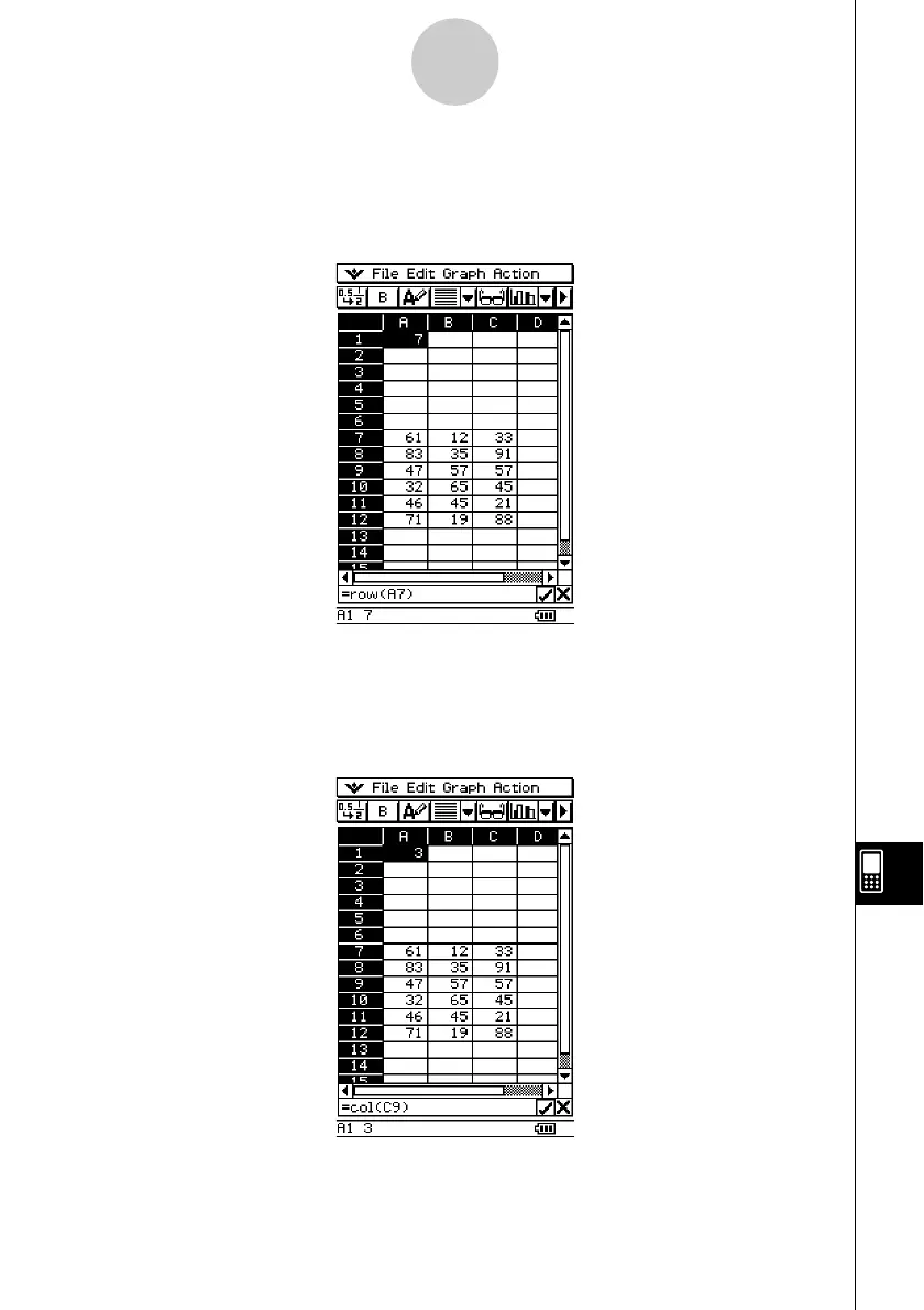 Example: To determine the row number of cell A7 and input the result in cell A1: