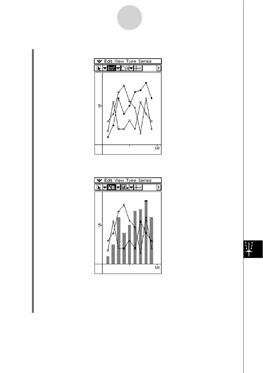 (2) With the stylus, tap any data point on the line you wish to change to a column graph.