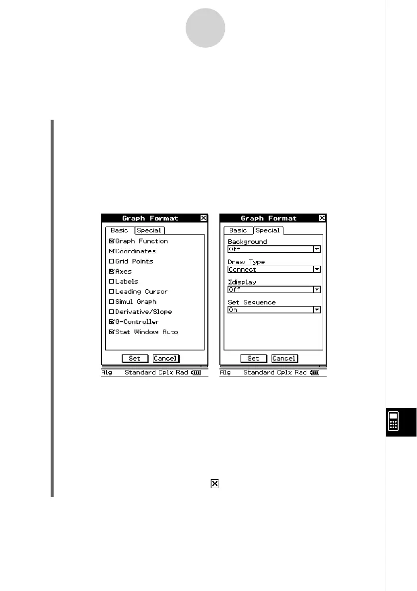 Next, tap [Setup] and then [Graph Format]. This displays the Graph Format dialog
