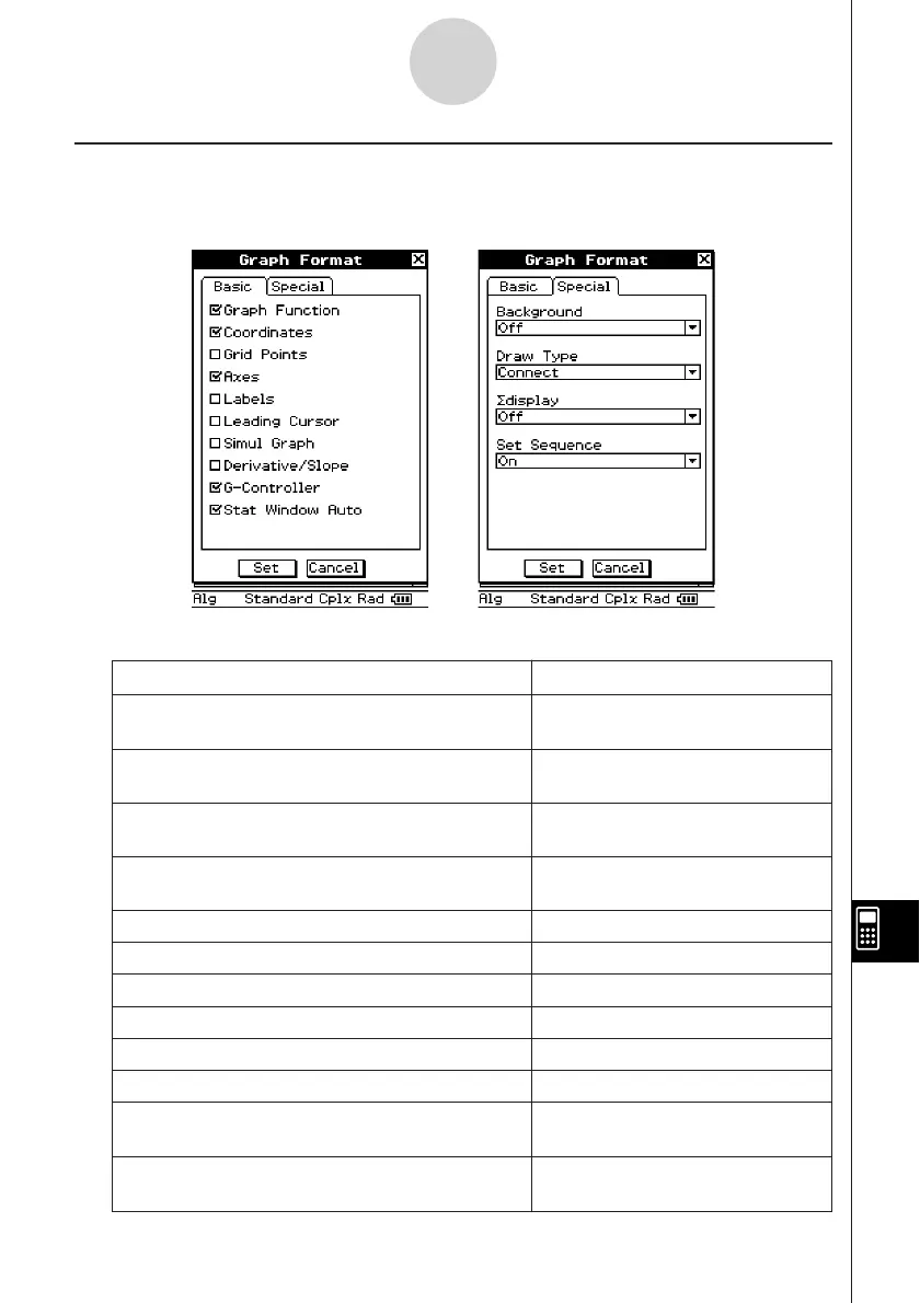 Use the Graph Format dialog box to configure settings for the Graph window and for drawing