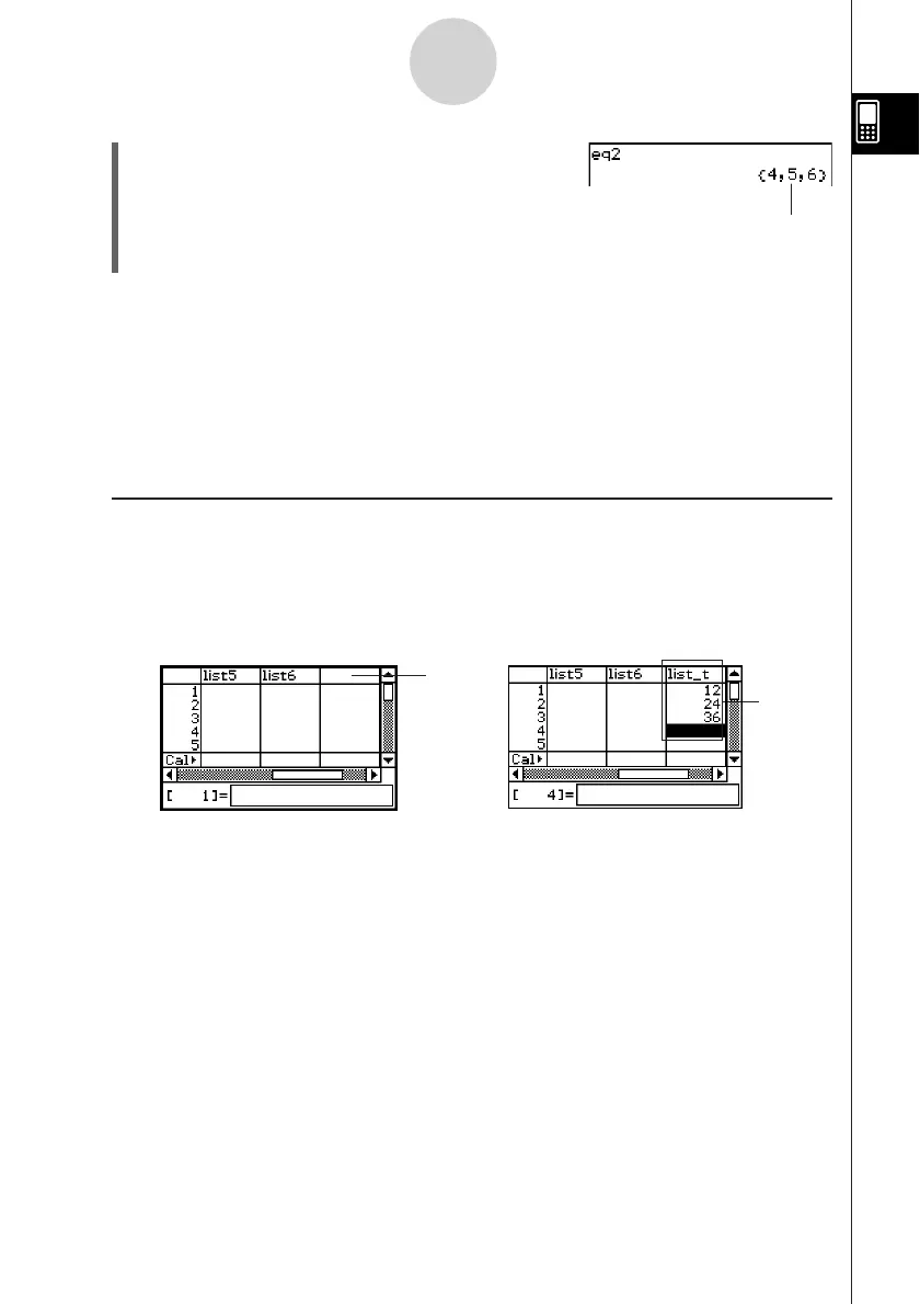 window (1), and then input values into the list (2). This creates a LIST variable with the