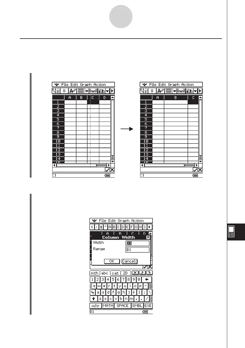 the stylus, using the [Column Width] command, or using the [AutoFit Selection] command.