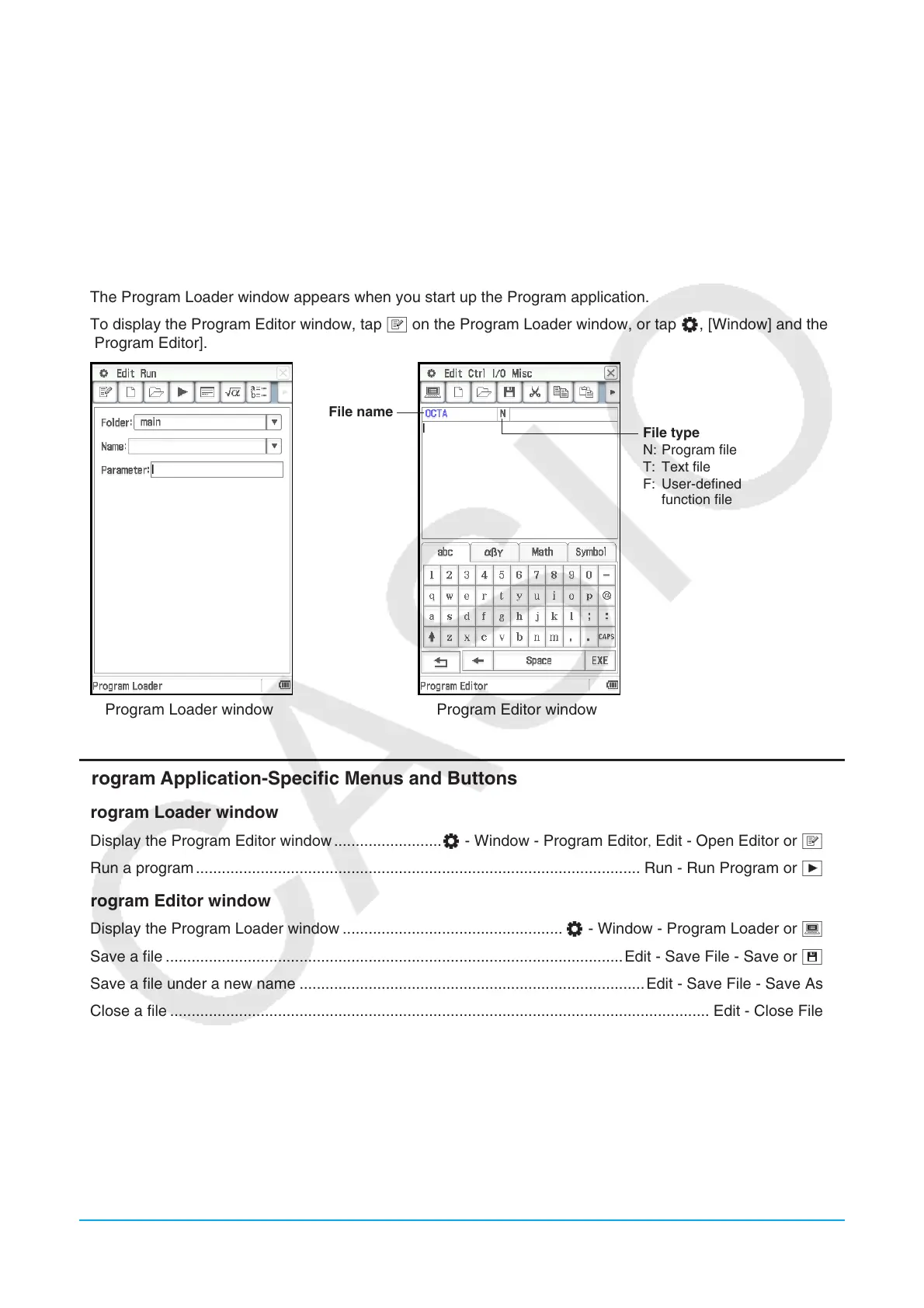 • To display the Program Editor window, tap P on the Program Loader window, or tap O, [Window] and then