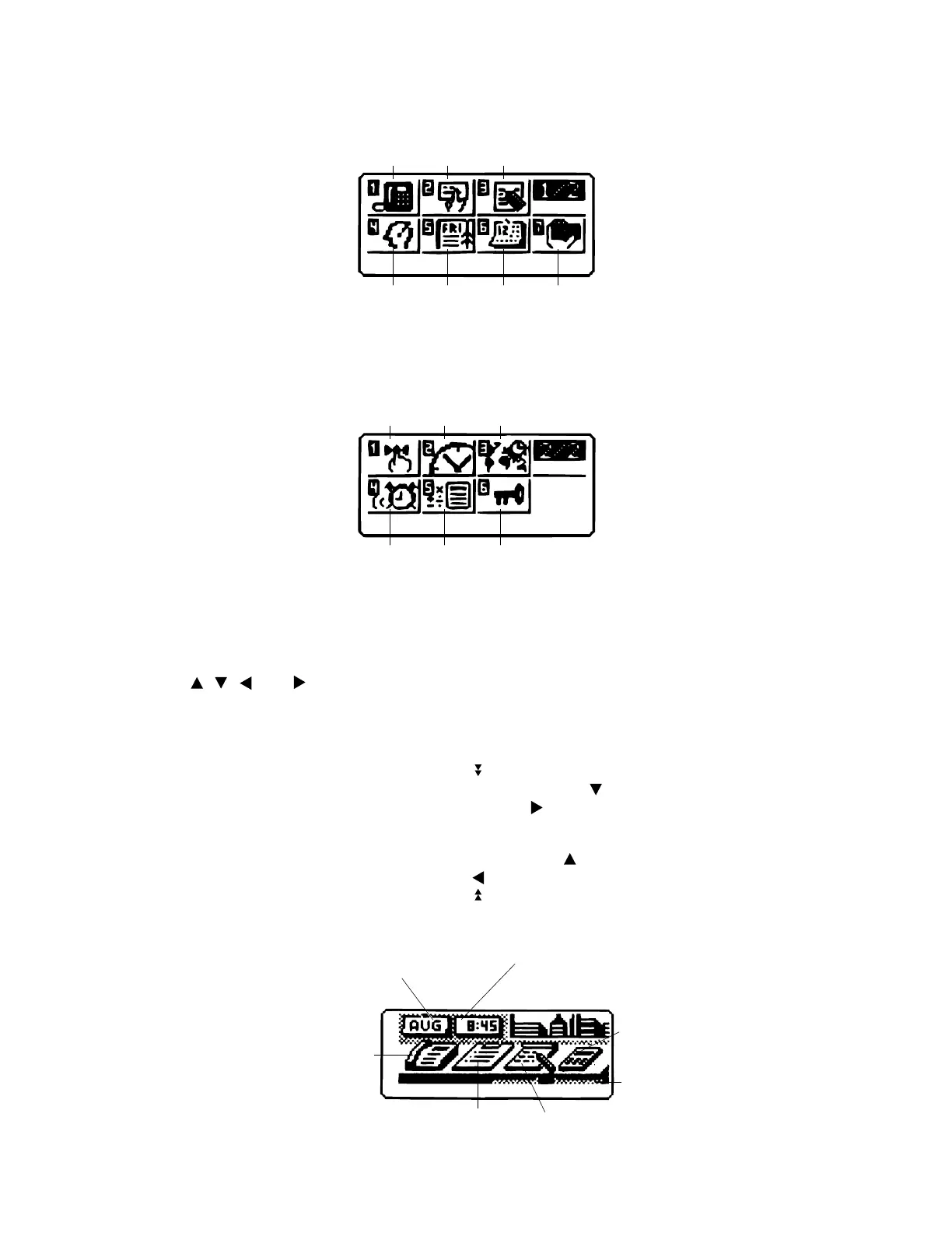 • While an icon in the bottom row of Page 1 is highlighted, press to change to Page 2.