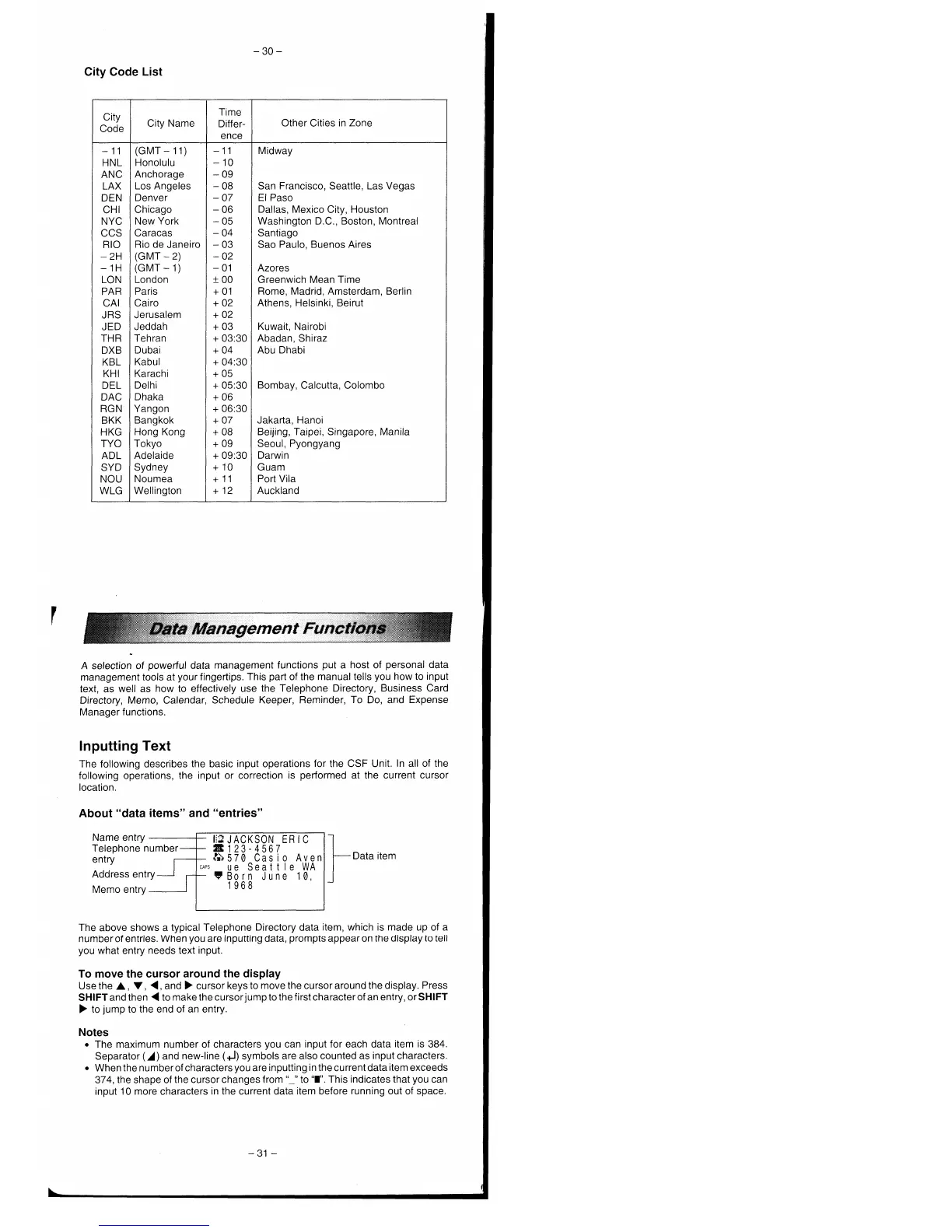Casio CSF-7950 - Data Management Functions; Text Input and Formatting