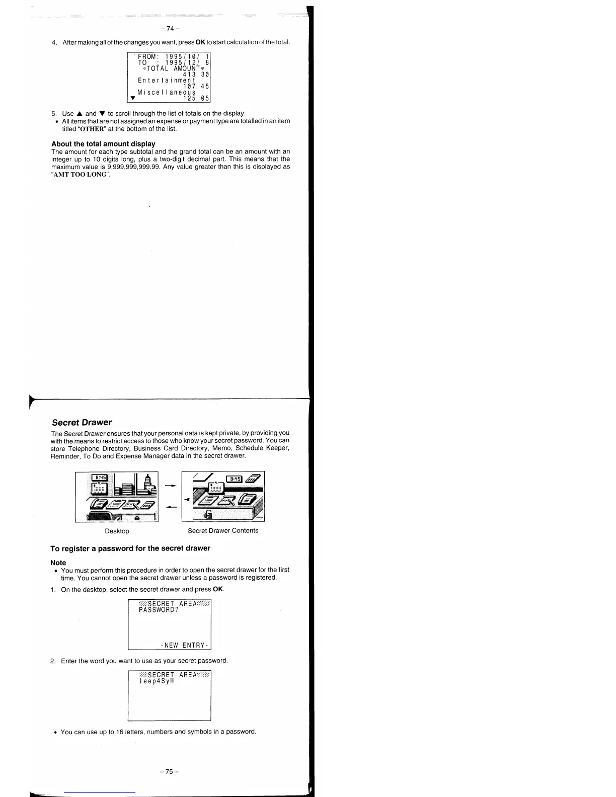 Casio CSF-7950 - Secret Drawer; Password and Security