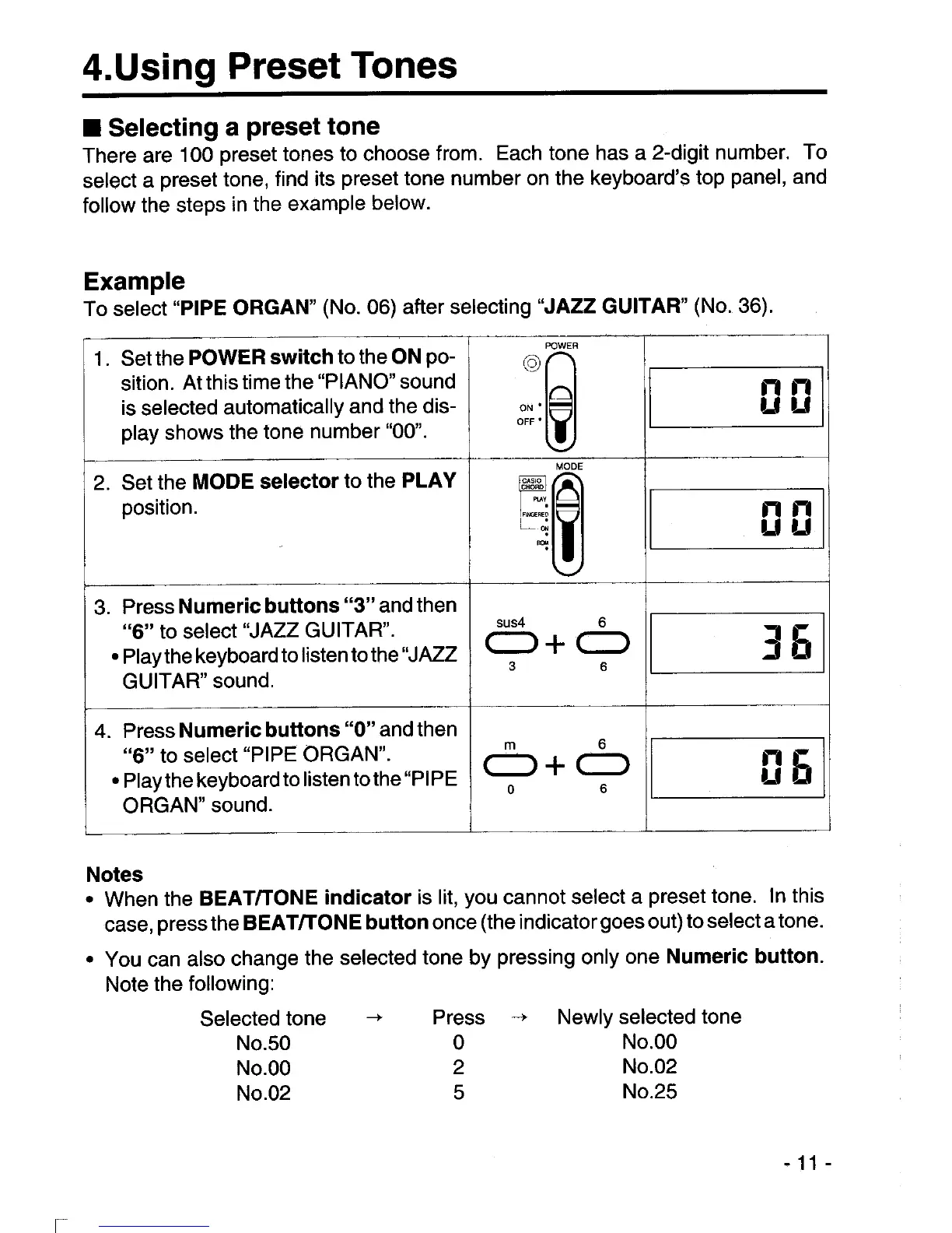 Casio CT-840 - Selecting a Preset Tone