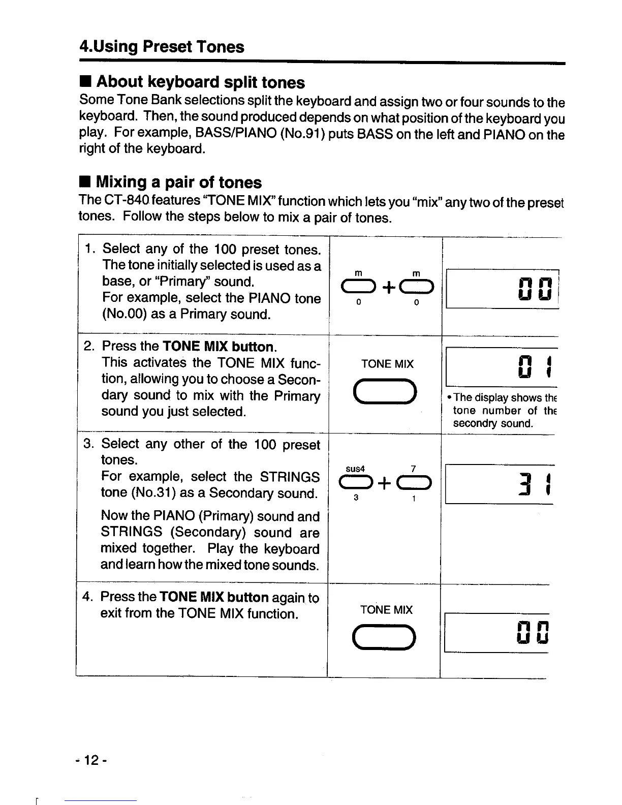 Casio CT-840 - Using Preset Tones