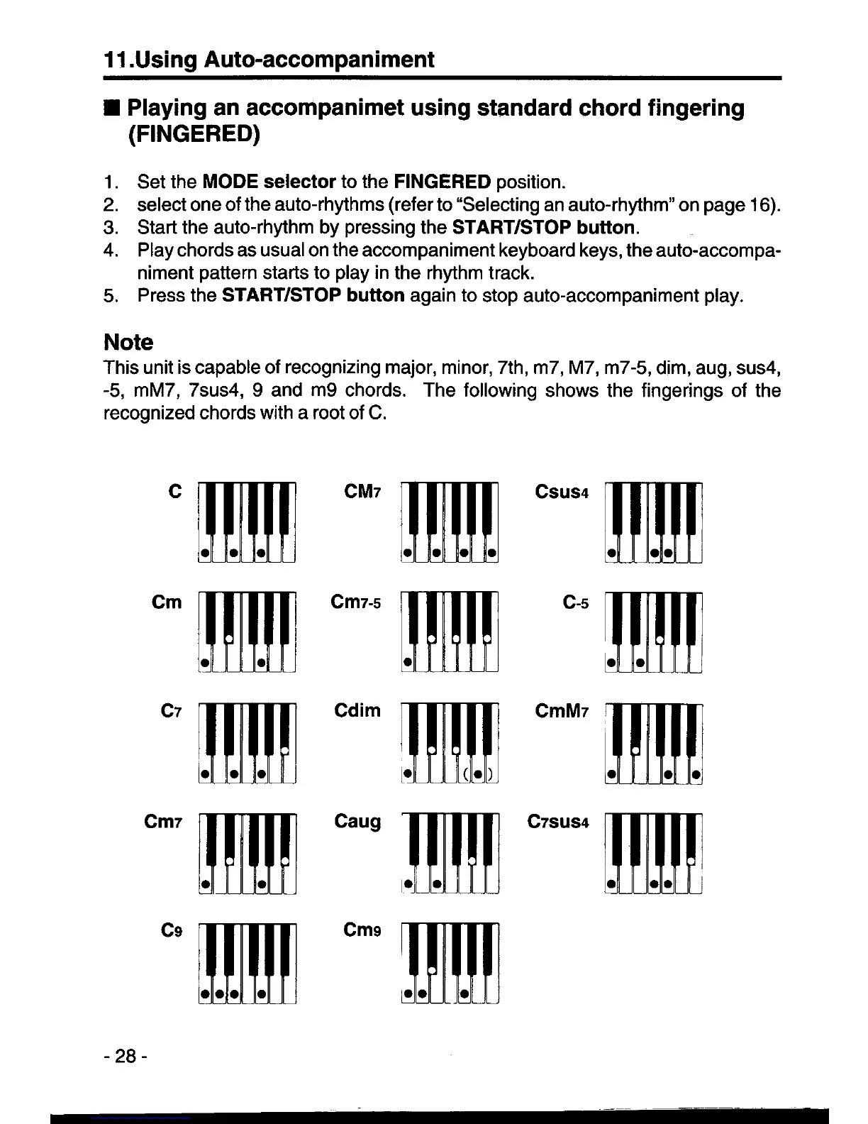 Casio CT-840 - Playing with Standard Chord Fingering; Recognized Chord Fingerings