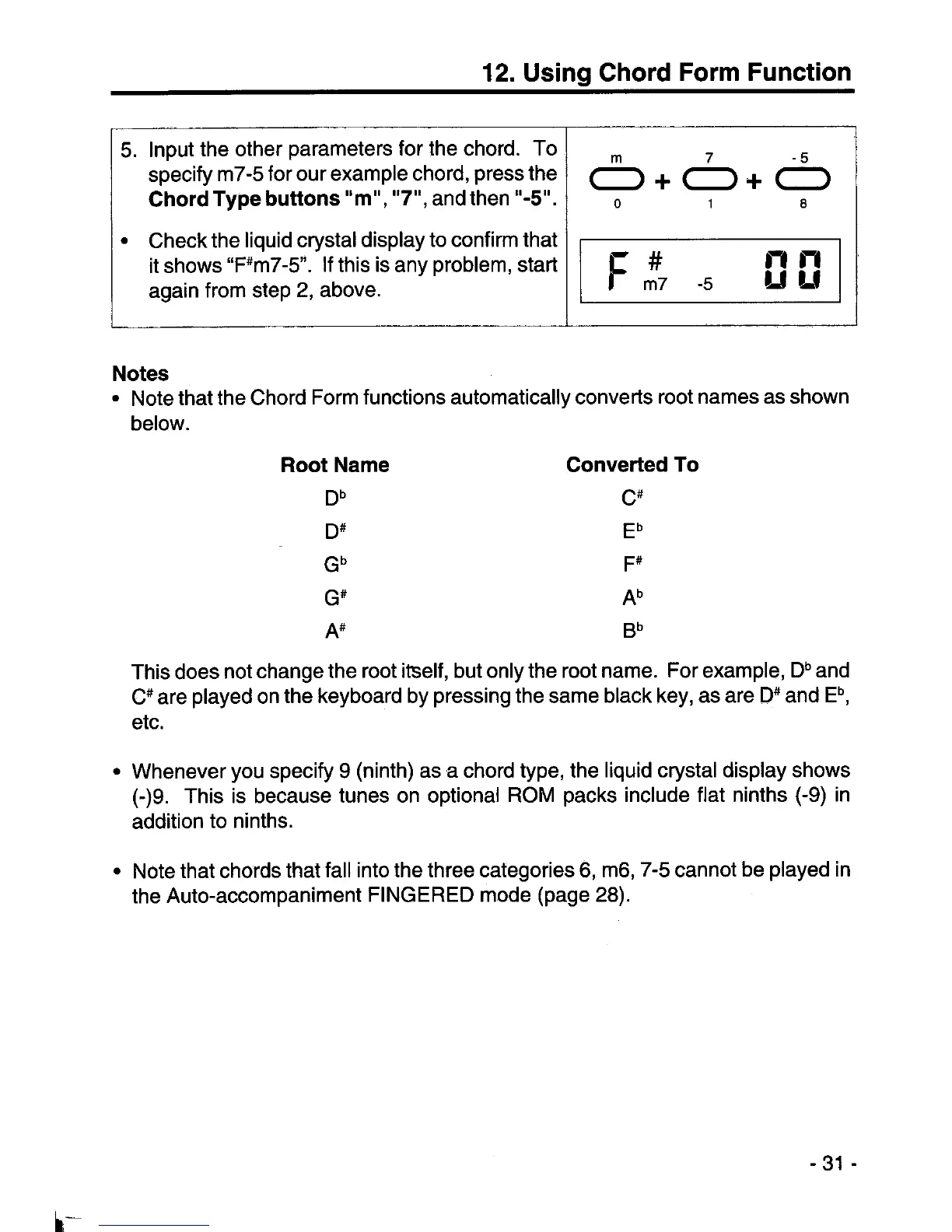 Casio CT-840 - Using Chord Form Function; Inputting Chord Parameters