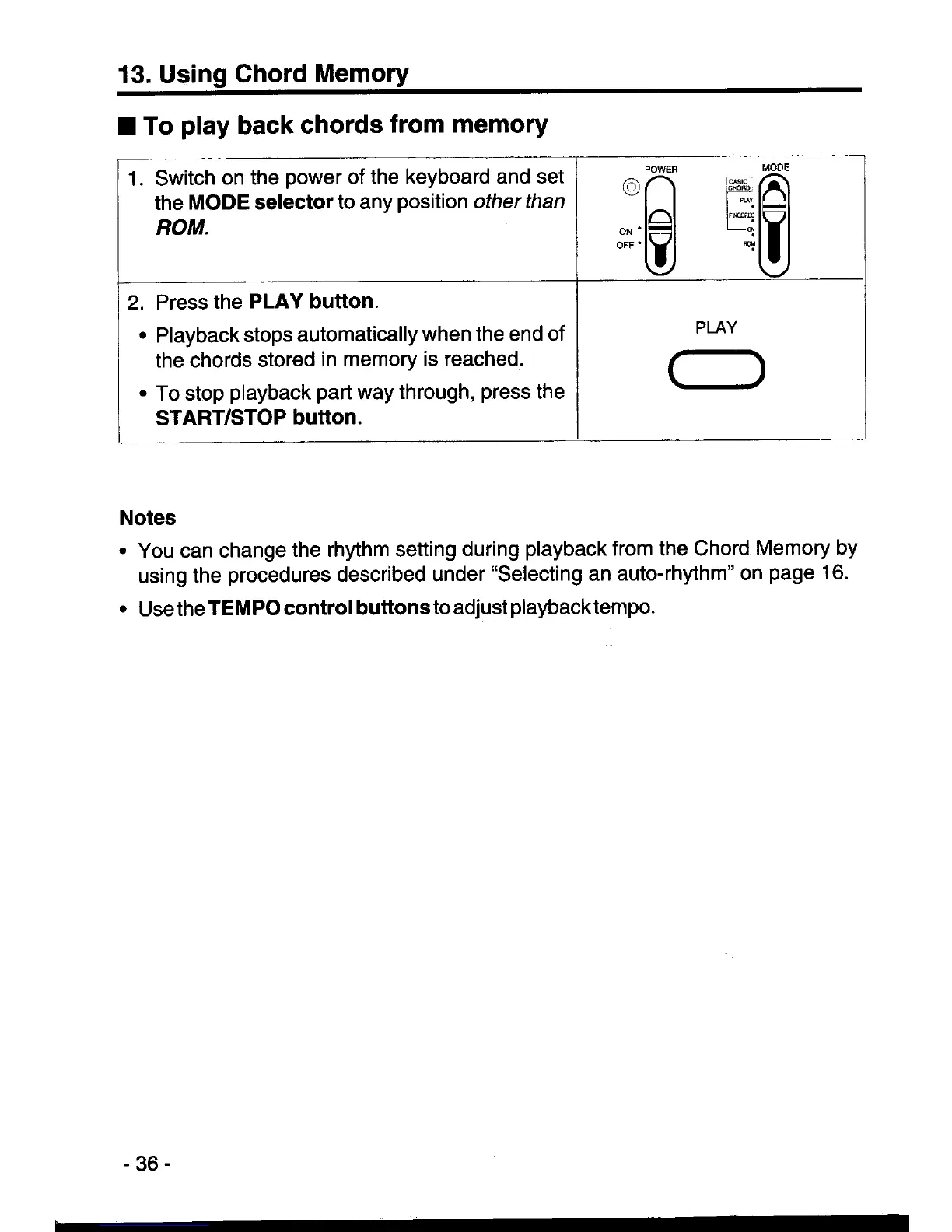 Casio CT-840 - Using Chord Memory; Playing Back Chords from Memory