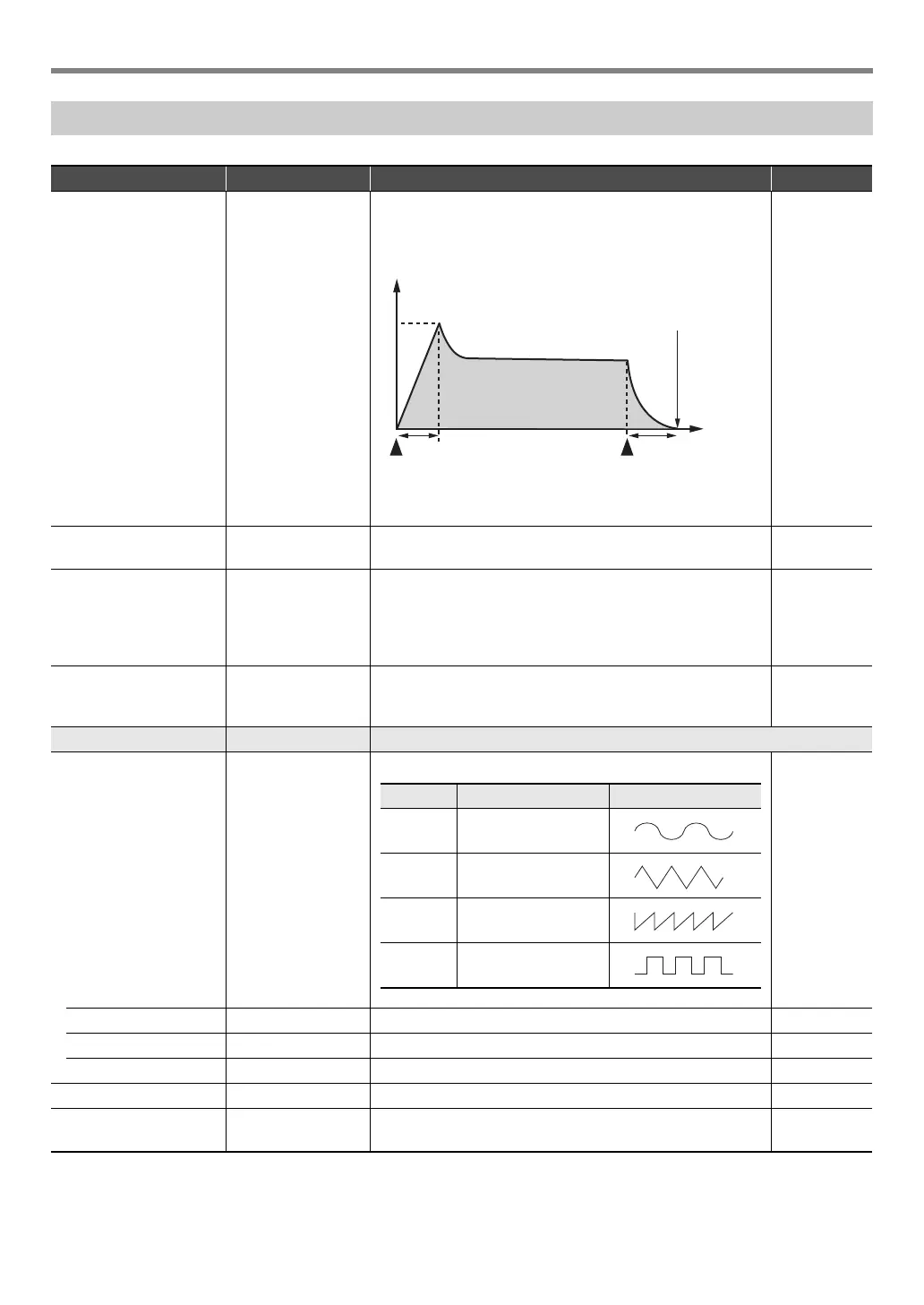 Attack Time Atk.Time Adjusts the time after a key is pressed from when the note