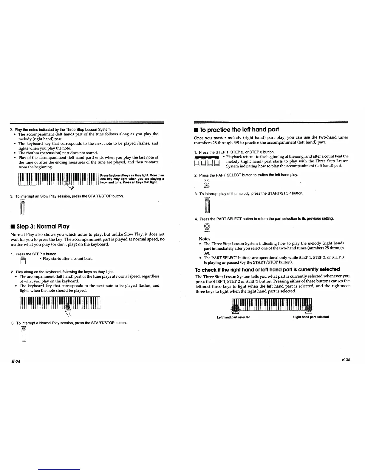 2. Press the PART SELECT button to switch the left hand play.