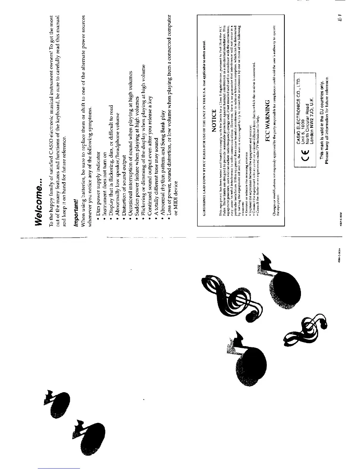 Casio CTK-558 - Welcome...; Important!; GUIDELINES LAID DOWN BY FCC RULES FOR USE OF THE UNIT IN THE U.S.A.